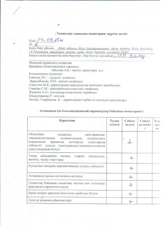 Тамақтандыру сапасына мониторинг жүргізу актісі