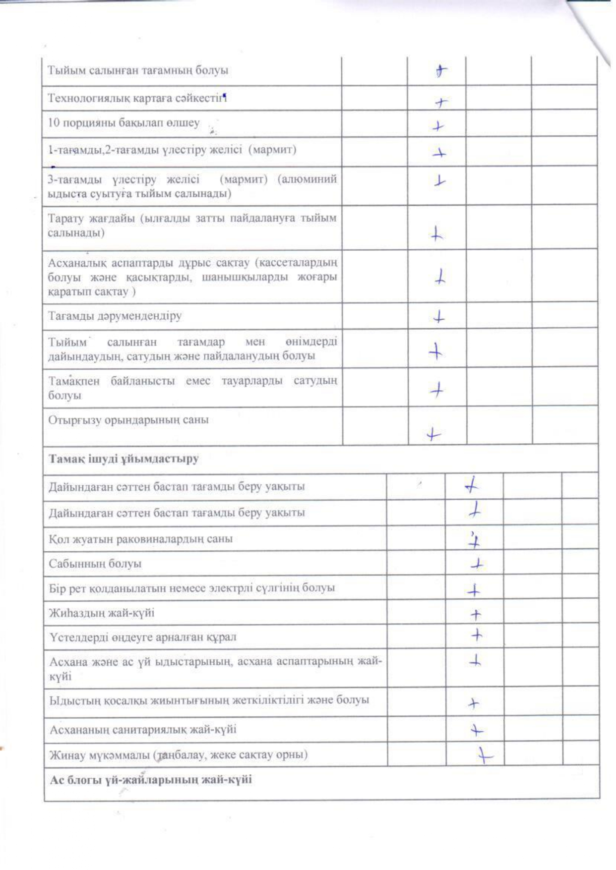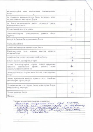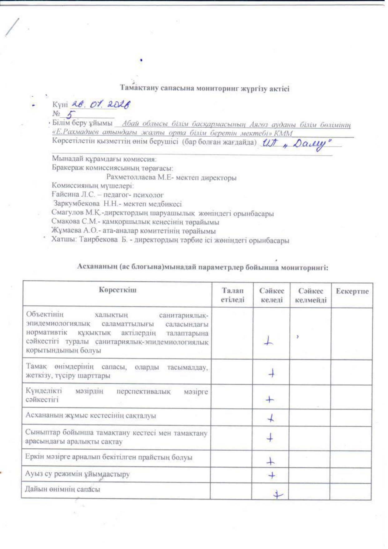 » Тамақтану сапасына мониторинг жүргізу актісі