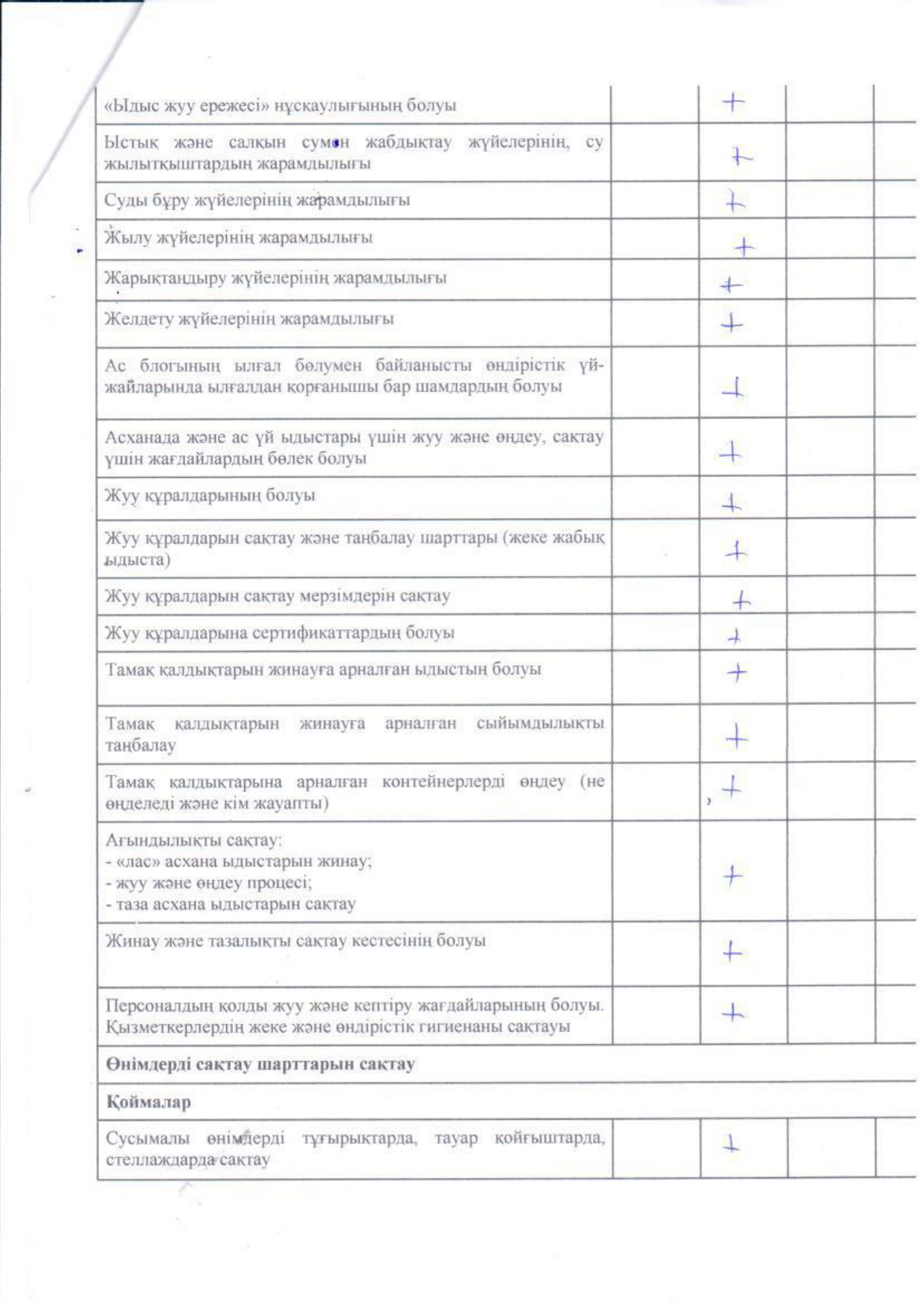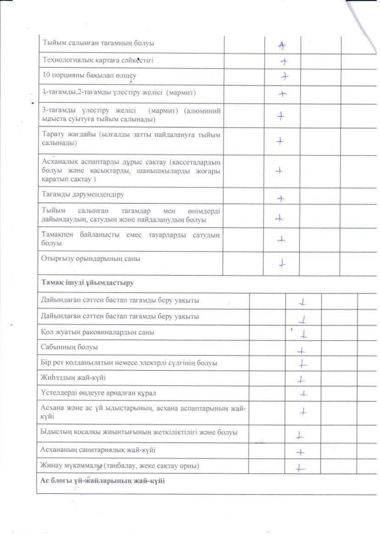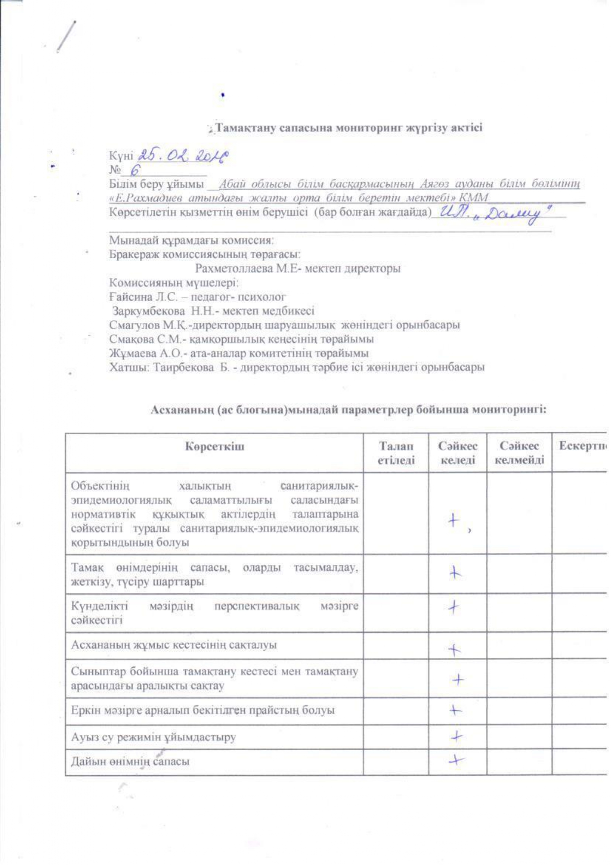 » Тамақтану сапасына мониторинг жүргізу актісі