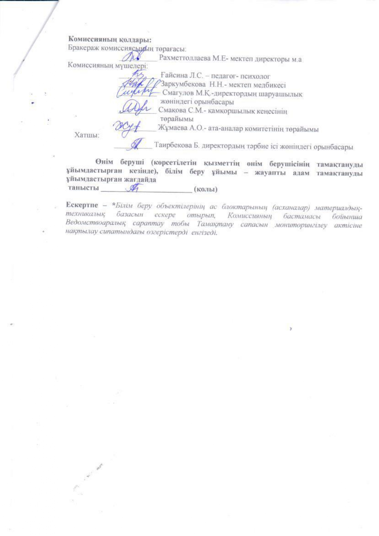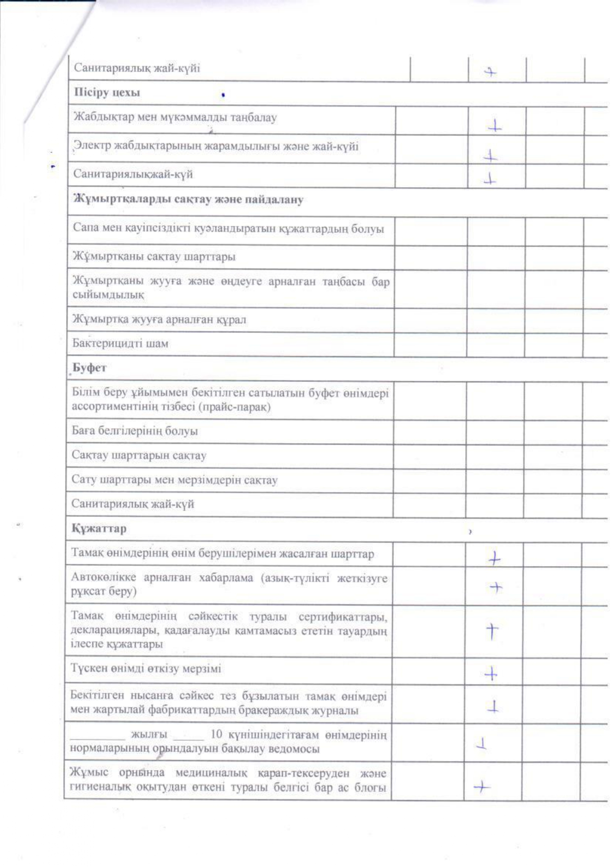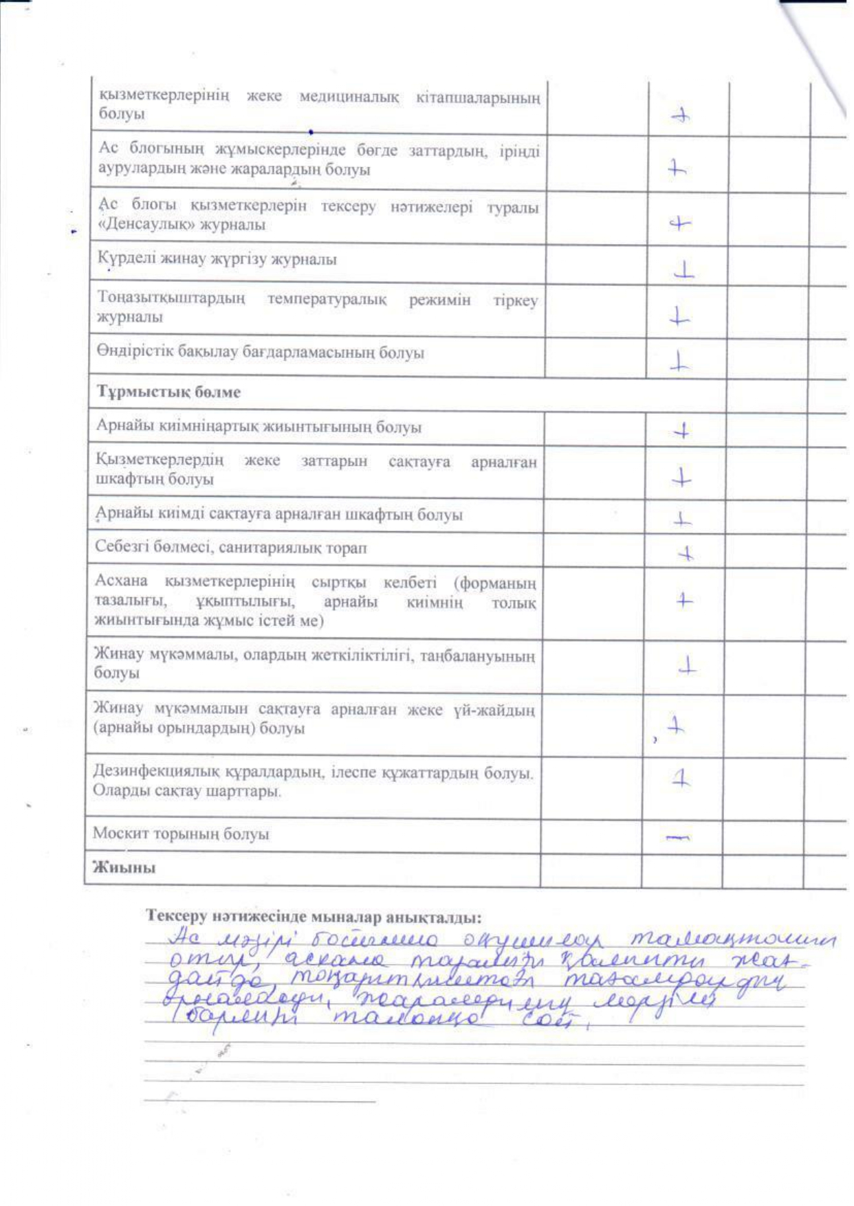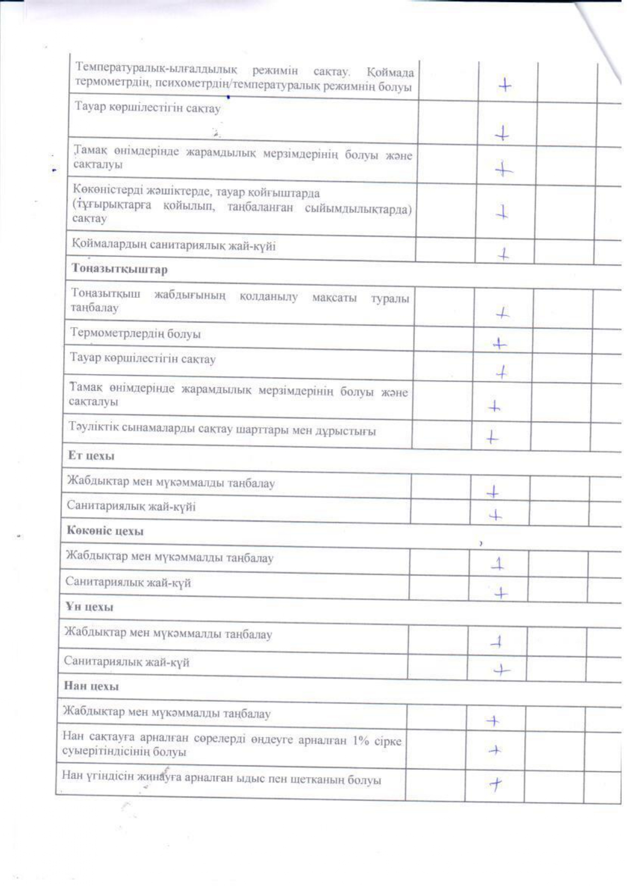 » Тамақтану сапасына мониторинг жүргізу актісі